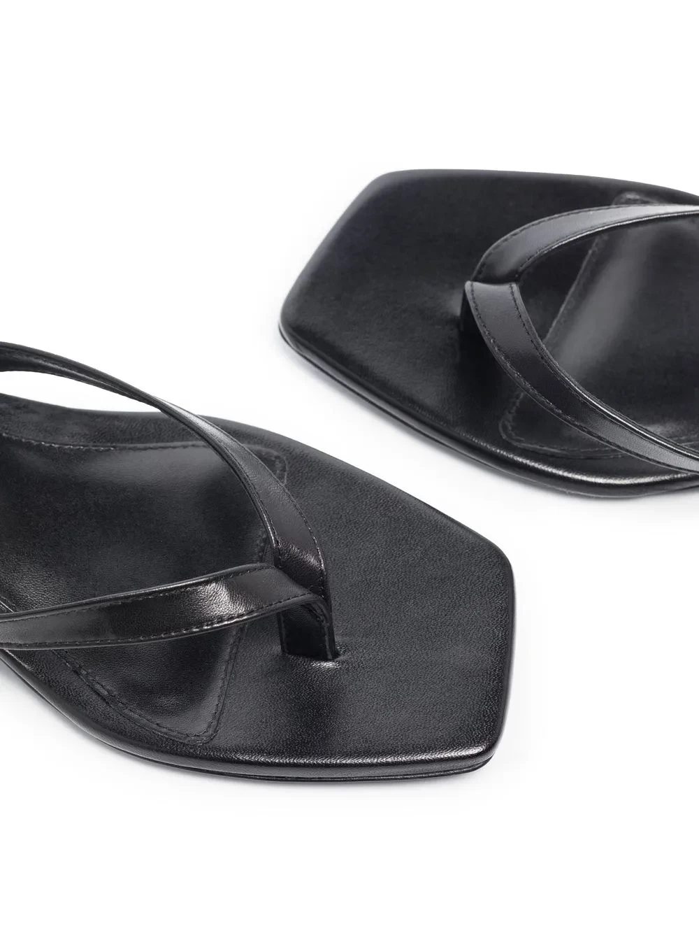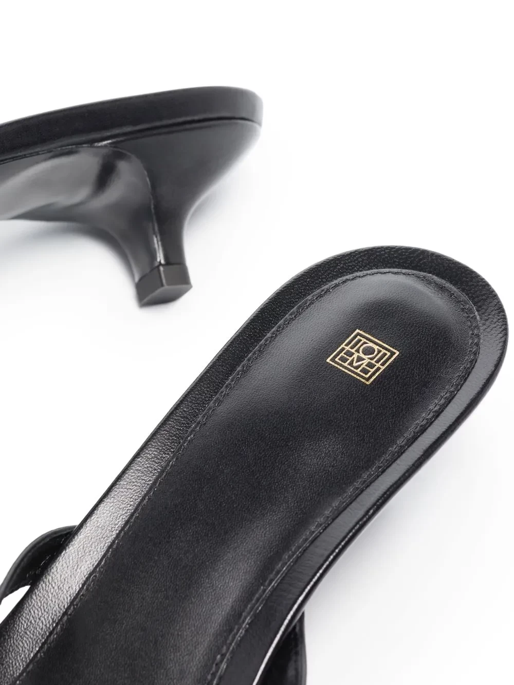 Channelling a minimalistic 1990s aesthetic, these black flip flops from TOTEME's SS22 collection are crafted from soft leather in Italy and defined by their kitten heel silhouette. With a T-strap to the toe, they evoke the Stockholm-based brand's 'appeal of a modern uniform through distinct design cues.'