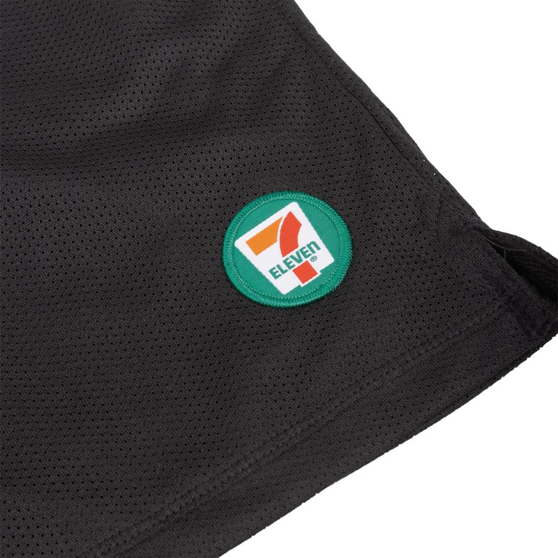 • Perforated double-layer fabric shorts, on-seam side pockets, side splits at hem, elastic waistband, white drawcord with metal tips