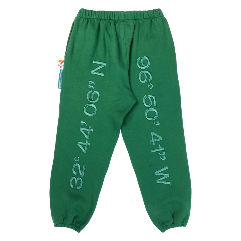 Rooted in heritage, these heavyweight 12oz fleece sweatpants are crafted in signature 7-Eleven green and designed to deliver unmatched comfort. Elevated with tonal 3D embroidered coordinates, they pay homage to the first-ever 7-Eleven location in Oak Cliff, Dallas, Texas.