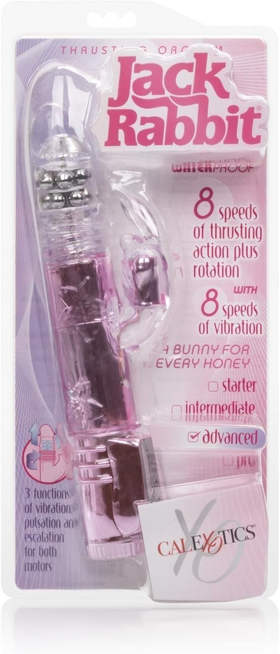 • THE THRUSTING JACK RABBIT: Satisfy your every desire with this elaborate pleasure vibe boasting a soft fluttering rabbit stimulator, luxurious rotating shaft, dual motors, 8 vibrations functions and 8 thrusting speeds for the ultimate pleasure experience