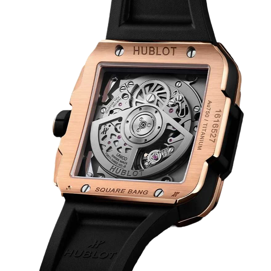 821.OX.0118.LR.0999 Hublot Square Bang Chronograph Unico 18K King Gold & Colored Gemstones Rainbow Men's Watch