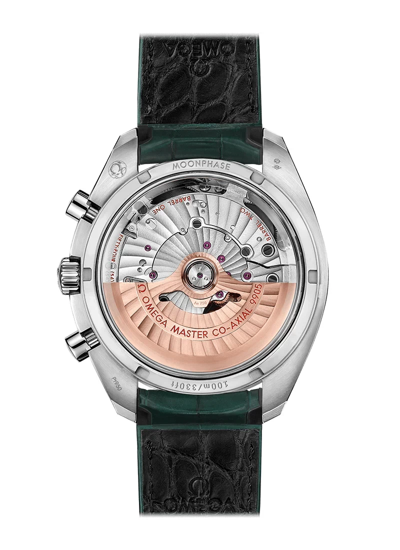 Indulge in the epitome of luxury with the Omega         304.93.44.52.99.003. This stunning timepiece features a 44.25 mm Platinum case that radiates sophistication. Green ceramic bezel ring includes a brushed platinum Liquidmetal™ tachymeter scale.